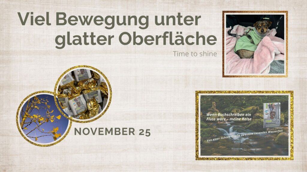 Der November war von einer ganz eigenen Atmosphäre geprägt – leiser, tiefer, reflektierender. Zwischen Manuskript-Endspurt und dem Start des Layouts wollte etwas in mir die Erfahrung des Buchschreibens ausdrücken. Einfach, weil innerlich so viel in Bewegung war und nun zur Ruhe kommen durfte.